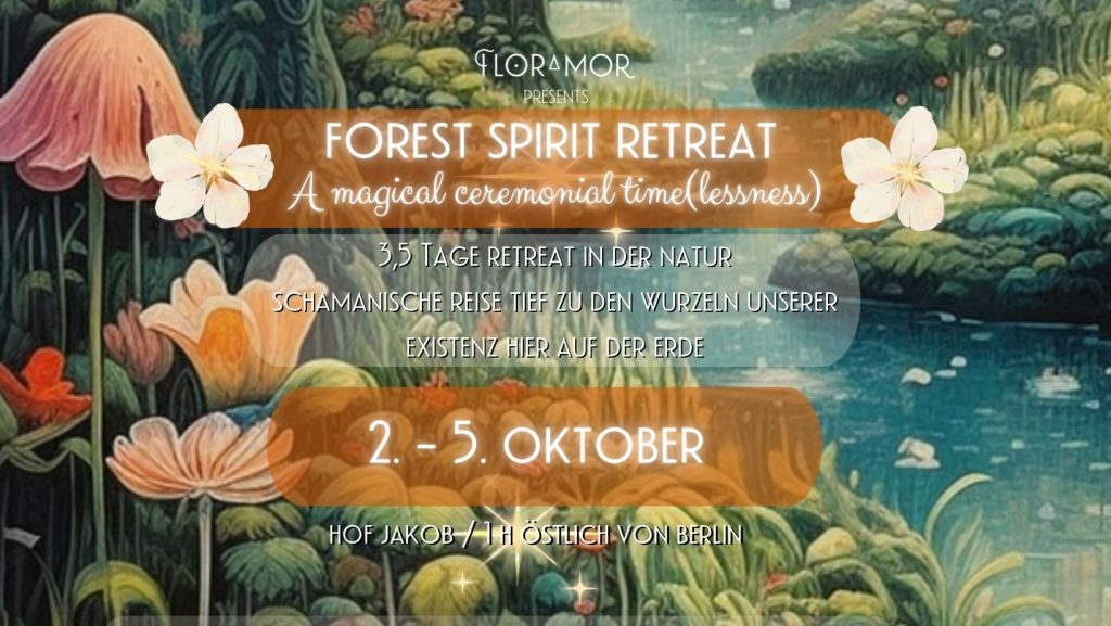 Content & Flow: life is an organic flow, therefore this retreat has no exact time-set schedule. The organic, intuitive power is guiding all us through this time together. We pay attention to the need of the moment, what is truly needed and resonates, what is the time of the day etc. This way we dive into a relaxed space of timelessness, where you can let go of the clock and timingness. The schedule written here is for your orientation, it will be adapted to the moment during the retreat. Also, some of the content can vary slightly – except for main ceremonies and integration circles. On Sunday we will gently come back into the clock-oriented timing in order to leave on time and let you go home in a relaxed, spacious manner. This way you can land gently and safely back in your life.
