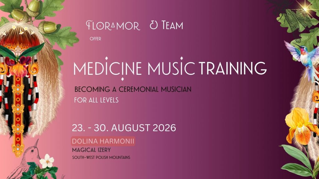 Da die zeremonielle Arbeit die ursprüngliche Art und Weise ist, Medizinmusik zu teilen, gestalten wir dieses Training als Ritual, es gemeinsam zelebriertes, von Floramor geführtes Feld der Initiation into the path of a ceremonial creator/healer. Die Führung durch die Spirits ist unsere wichtigste Unterstützung. Wir kultivieren dieses Bewusstsein bei jedem Schritt.